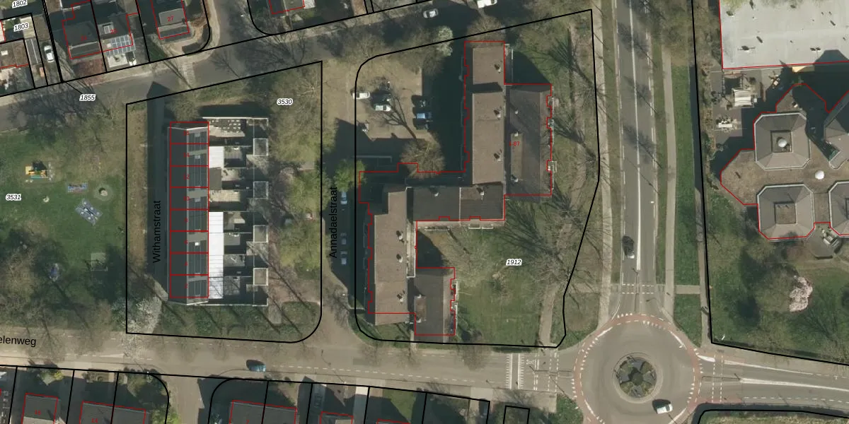 Het perceel waarop Annadaelstraat 65 staat heeft een oppervlakte van 3915 m². Dit is een zeer groot perceel. De perceeloppervlakte wordt geregistreerd door het Kadaster. Gedetailleerde informatie over de maten van dit perceel kunt u vinden in het rapport Kadastrale kaart met maatvoering van Annadaelstraat 65.