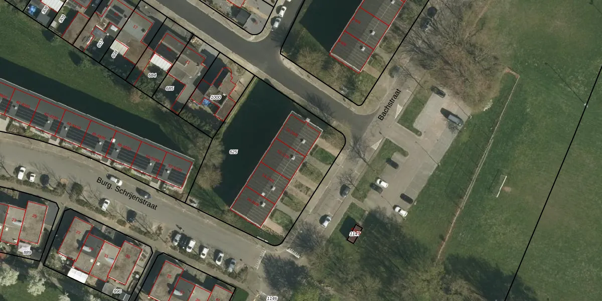 Het perceel waarop Bachstraat 10-G1 staat heeft een oppervlakte van 1700 m². Dit is een zeer groot perceel. De perceeloppervlakte wordt geregistreerd door het Kadaster. Gedetailleerde informatie over de maten van dit perceel kunt u vinden in het rapport Kadastrale kaart met maatvoering van Bachstraat 10-G1.