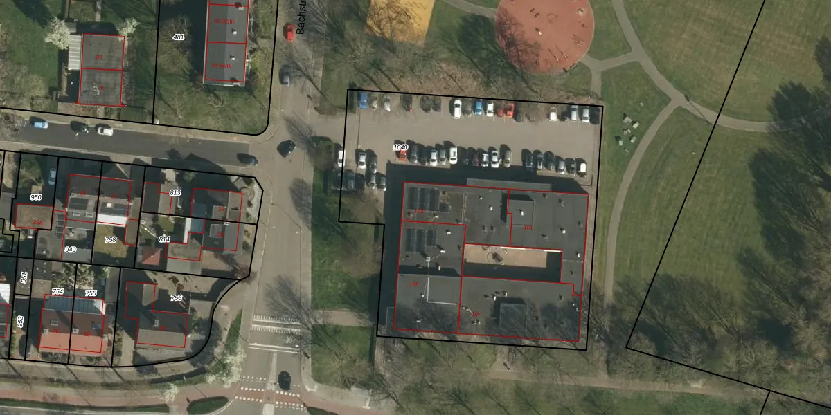 Bachstraat 103 is gelegen op kadastraal perceel STD00H1040. Deze kadastrale aanduiding is uniek en wordt gebruikt door het Kadaster om eigendomsrechten en andere zakelijke rechten vast te leggen. Het perceel maakt onderdeel uit van de kadastrale gemeente Sittard.
