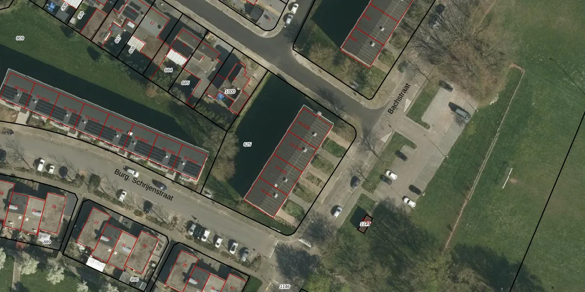 Het perceel waarop Bachstraat 12-II staat heeft een oppervlakte van 1700 m². Dit is een zeer groot perceel. De perceeloppervlakte wordt geregistreerd door het Kadaster. Gedetailleerde informatie over de maten van dit perceel kunt u vinden in het rapport Kadastrale kaart met maatvoering van Bachstraat 12-II.