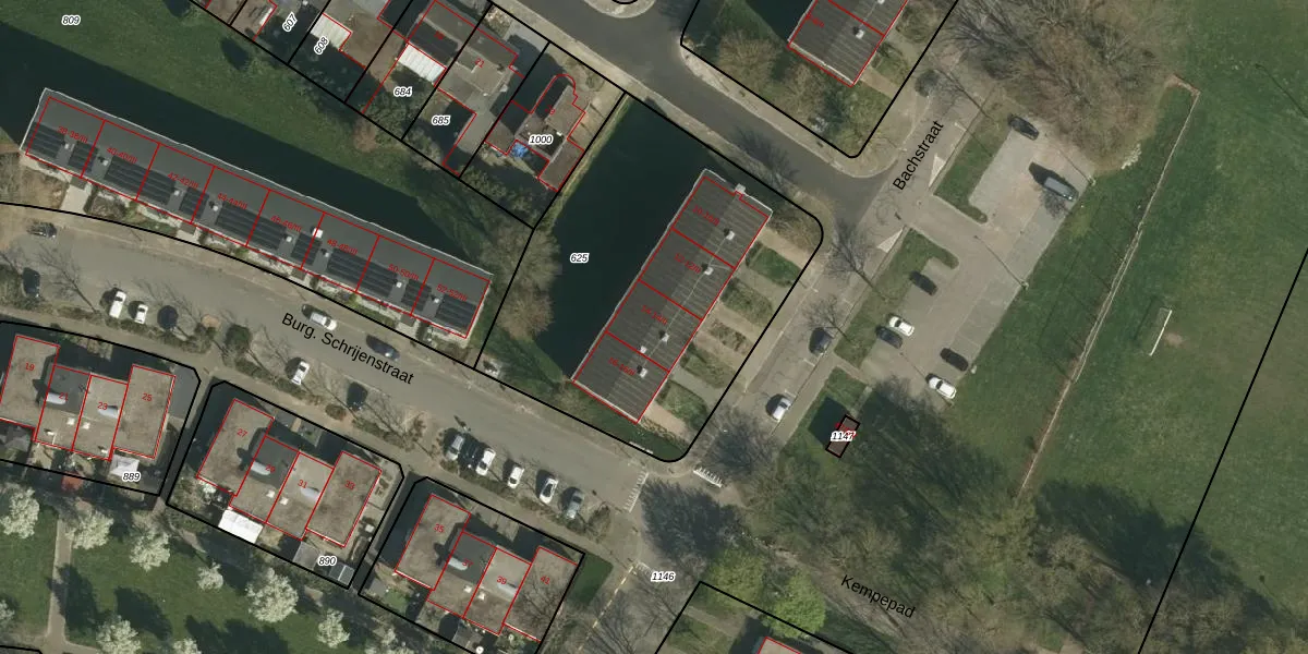 Het perceel waarop Bachstraat 14-I staat heeft een oppervlakte van 1700 m². Dit is een zeer groot perceel. De perceeloppervlakte wordt geregistreerd door het Kadaster. Gedetailleerde informatie over de maten van dit perceel kunt u vinden in het rapport Kadastrale kaart met maatvoering van Bachstraat 14-I.