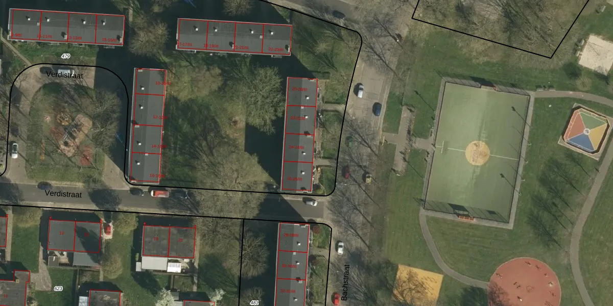 Het perceel waarop Bachstraat 24 staat heeft een oppervlakte van 1,1 ha. Dit is een zeer groot perceel. De perceeloppervlakte wordt geregistreerd door het Kadaster. Gedetailleerde informatie over de maten van dit perceel kunt u vinden in het rapport Kadastrale kaart met maatvoering van Bachstraat 24.