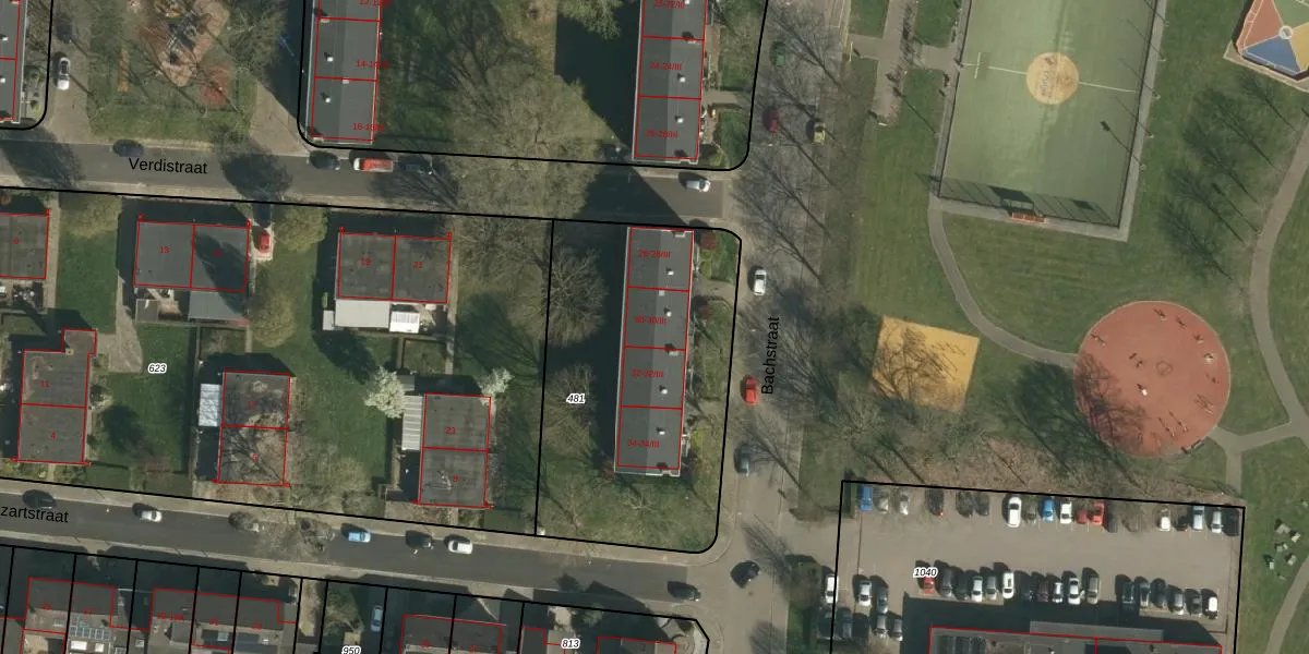Het perceel waarop Bachstraat 30-I staat heeft een oppervlakte van 1380 m². Dit is een zeer groot perceel. De perceeloppervlakte wordt geregistreerd door het Kadaster. Gedetailleerde informatie over de maten van dit perceel kunt u vinden in het rapport Kadastrale kaart met maatvoering van Bachstraat 30-I.