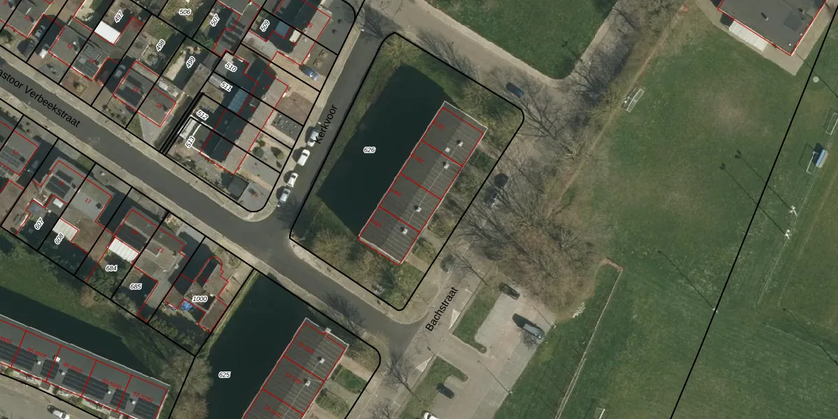 Het perceel waarop Bachstraat 6 staat heeft een oppervlakte van 1960 m². Dit is een zeer groot perceel. De perceeloppervlakte wordt geregistreerd door het Kadaster. Gedetailleerde informatie over de maten van dit perceel kunt u vinden in het rapport Kadastrale kaart met maatvoering van Bachstraat 6.