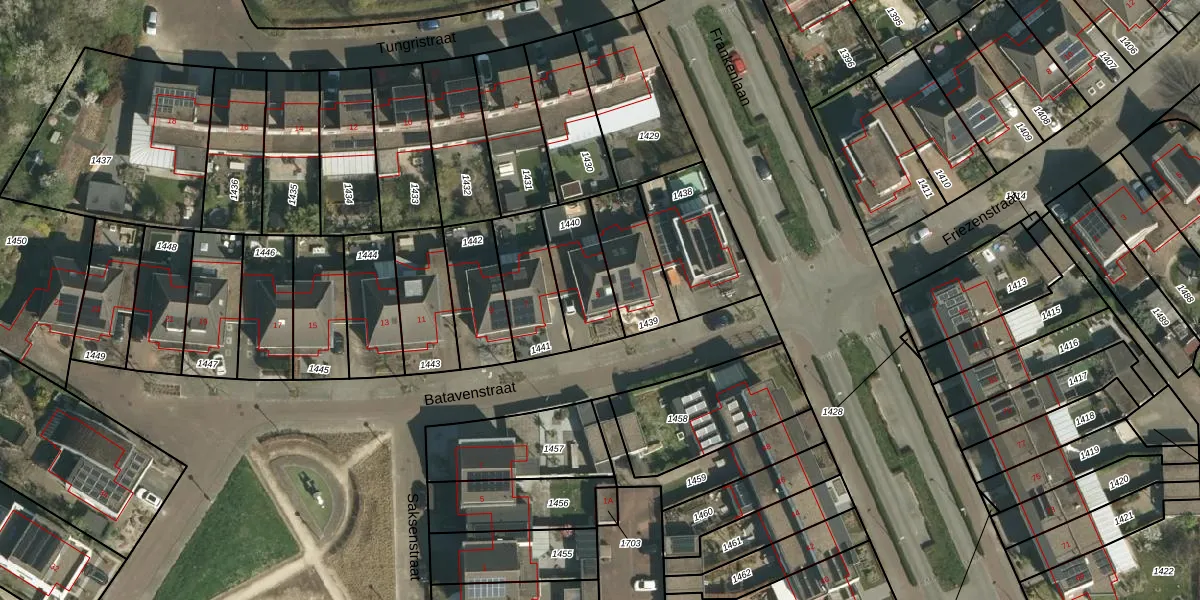 Het perceel waarop Batavenstraat 5 staat heeft een oppervlakte van 213 m². Dit is een middelgroot perceel. De perceeloppervlakte wordt geregistreerd door het Kadaster. Gedetailleerde informatie over de maten van dit perceel kunt u vinden in het rapport Kadastrale kaart met maatvoering van Batavenstraat 5.