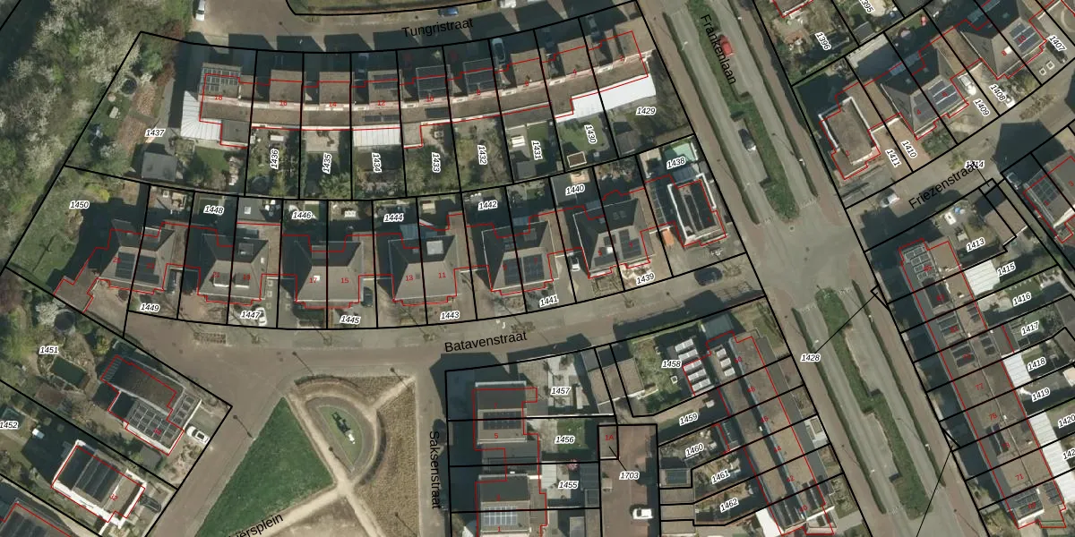 Het perceel waarop Batavenstraat 7 staat heeft een oppervlakte van 212 m². Dit is een middelgroot perceel. De perceeloppervlakte wordt geregistreerd door het Kadaster. Gedetailleerde informatie over de maten van dit perceel kunt u vinden in het rapport Kadastrale kaart met maatvoering van Batavenstraat 7.