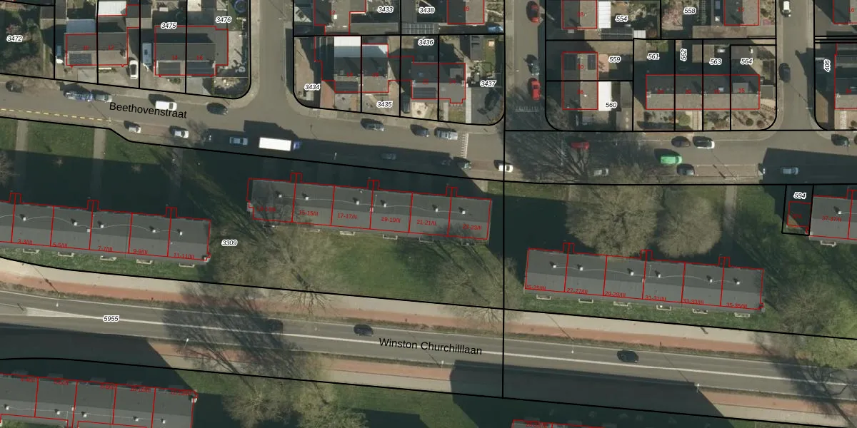 Het perceel waarop Beethovenstraat 21-I staat heeft een oppervlakte van 4170 m². Dit is een zeer groot perceel. De perceeloppervlakte wordt geregistreerd door het Kadaster. Gedetailleerde informatie over de maten van dit perceel kunt u vinden in het rapport Kadastrale kaart met maatvoering van Beethovenstraat 21-I.