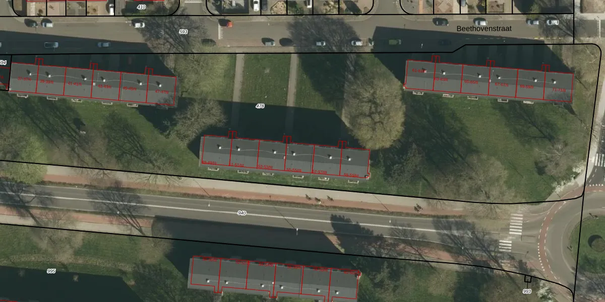 Beethovenstraat 55 is gelegen op kadastraal perceel STD00H478. Deze kadastrale aanduiding is uniek en wordt gebruikt door het Kadaster om eigendomsrechten en andere zakelijke rechten vast te leggen. Het perceel maakt onderdeel uit van de kadastrale gemeente Sittard.