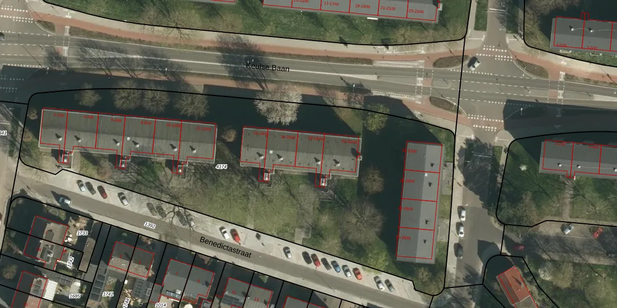 Het perceel waarop Benedictastraat 18-I staat heeft een oppervlakte van 5600 m². Dit is een zeer groot perceel. De perceeloppervlakte wordt geregistreerd door het Kadaster. Gedetailleerde informatie over de maten van dit perceel kunt u vinden in het rapport Kadastrale kaart met maatvoering van Benedictastraat 18-I.