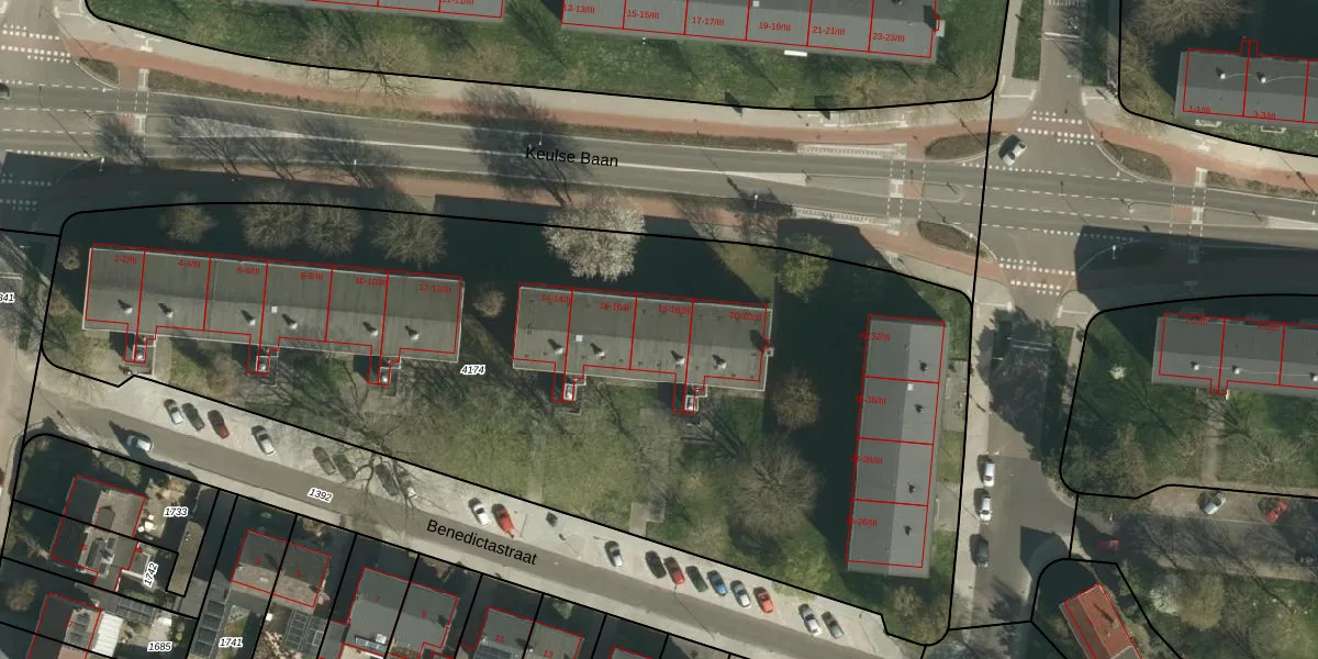 Benedictastraat 18-II is gelegen op kadastraal perceel STD00B4174. Deze kadastrale aanduiding is uniek en wordt gebruikt door het Kadaster om eigendomsrechten en andere zakelijke rechten vast te leggen. Het perceel maakt onderdeel uit van de kadastrale gemeente Sittard.
