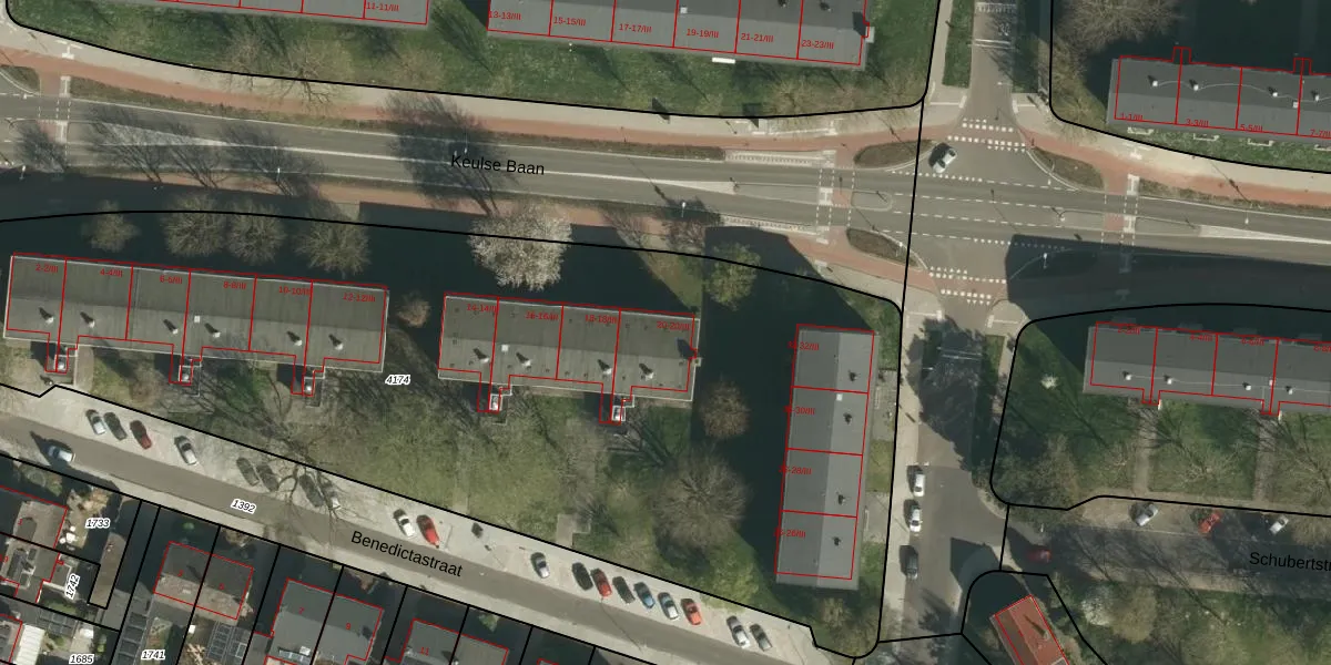 Benedictastraat 20-III is gelegen op kadastraal perceel STD00B4174. Deze kadastrale aanduiding is uniek en wordt gebruikt door het Kadaster om eigendomsrechten en andere zakelijke rechten vast te leggen. Het perceel maakt onderdeel uit van de kadastrale gemeente Sittard.
