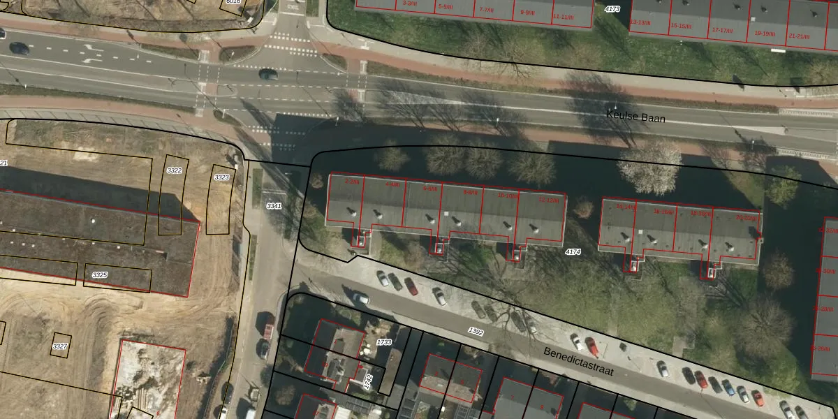 Het perceel waarop Benedictastraat 6-I staat heeft een oppervlakte van 5600 m². Dit is een zeer groot perceel. De perceeloppervlakte wordt geregistreerd door het Kadaster. Gedetailleerde informatie over de maten van dit perceel kunt u vinden in het rapport Kadastrale kaart met maatvoering van Benedictastraat 6-I.