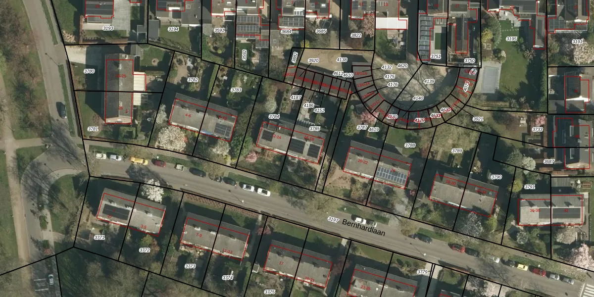 Het perceel waarop Bernhardlaan 16 staat heeft een oppervlakte van 400 m². Dit is een groot perceel. De perceeloppervlakte wordt geregistreerd door het Kadaster. Gedetailleerde informatie over de maten van dit perceel kunt u vinden in het rapport Kadastrale kaart met maatvoering van Bernhardlaan 16.