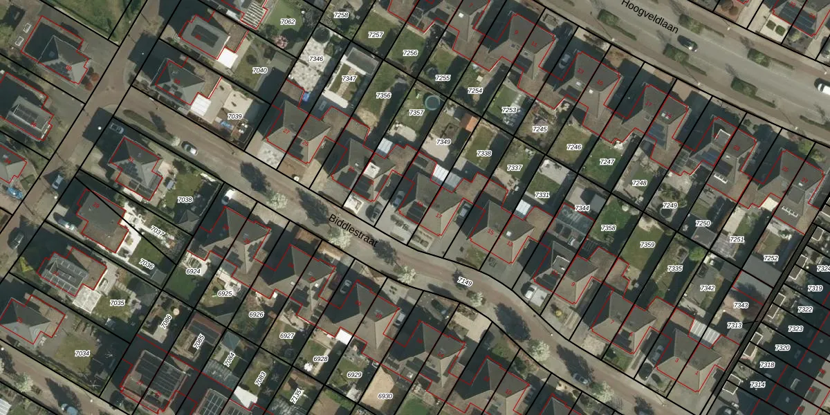 Biddlestraat 19 is gelegen op kadastraal perceel STD00A7349. Deze kadastrale aanduiding is uniek en wordt gebruikt door het Kadaster om eigendomsrechten en andere zakelijke rechten vast te leggen. Het perceel maakt onderdeel uit van de kadastrale gemeente Sittard.