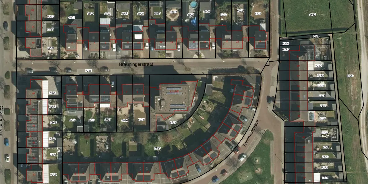 Brauningerstraat 11-9 is gelegen op kadastraal perceel STD00A6914. Deze kadastrale aanduiding is uniek en wordt gebruikt door het Kadaster om eigendomsrechten en andere zakelijke rechten vast te leggen. Het perceel maakt onderdeel uit van de kadastrale gemeente Sittard.