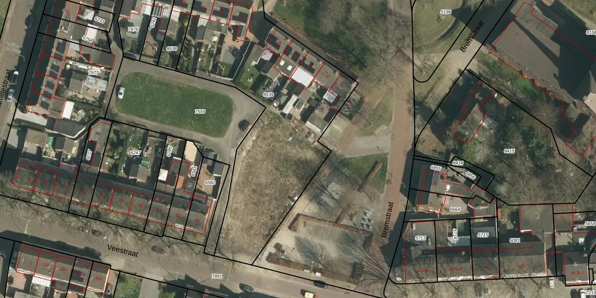 Het perceel waarop Bremstraat 24-B staat heeft een oppervlakte van 2666 m². Dit is een zeer groot perceel. De perceeloppervlakte wordt geregistreerd door het Kadaster. Gedetailleerde informatie over de maten van dit perceel kunt u vinden in het rapport Kadastrale kaart met maatvoering van Bremstraat 24-B.