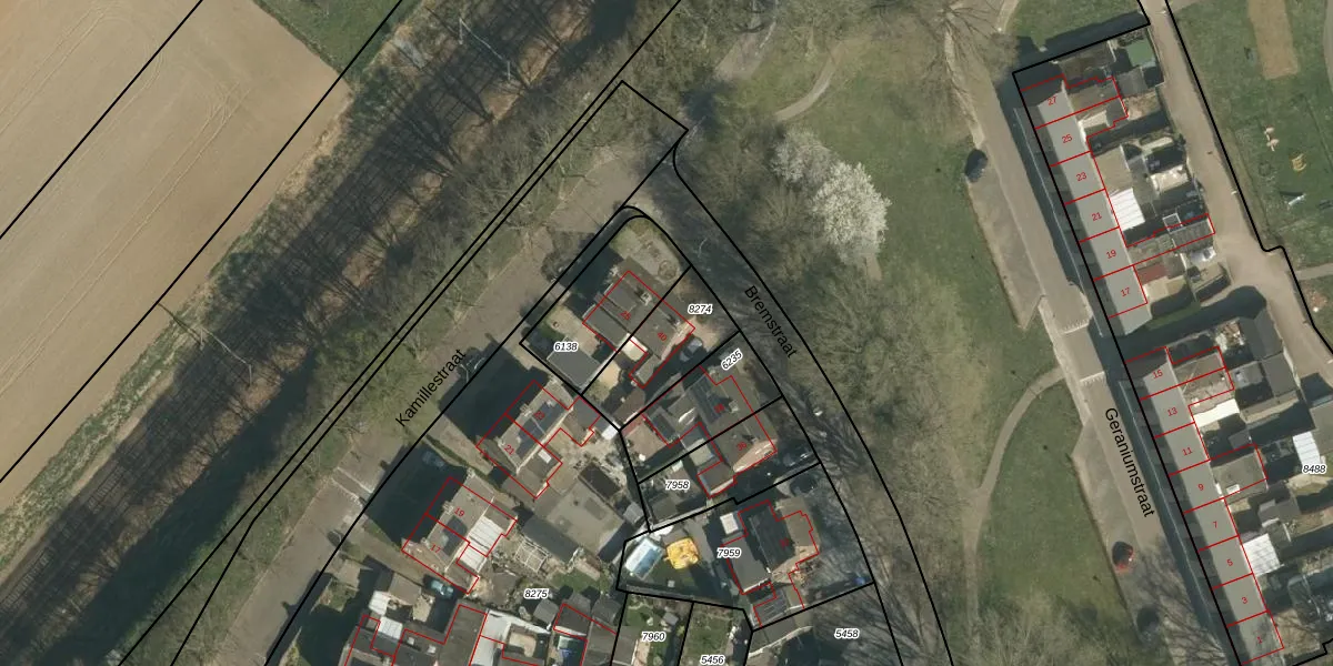 Gebruik de zoekbalk of klik op een perceel voor informatie over de adressen binnen dit perceel.