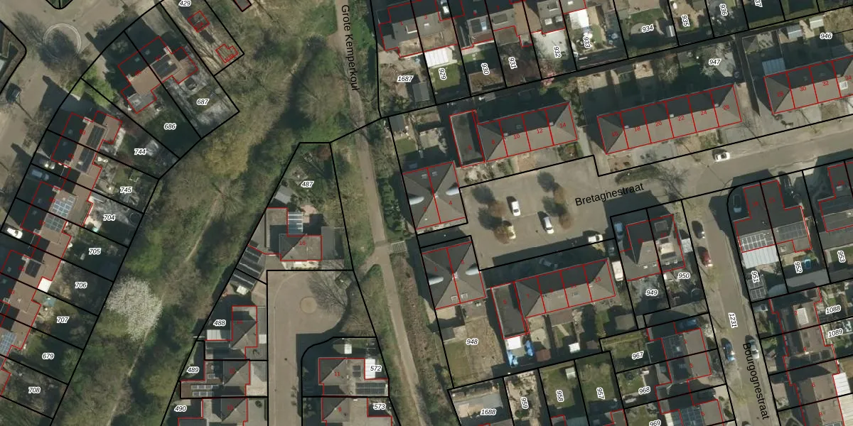 Het perceel waarop Bretagnestraat 2 staat heeft een oppervlakte van 2710 m². Dit is een zeer groot perceel. De perceeloppervlakte wordt geregistreerd door het Kadaster. Gedetailleerde informatie over de maten van dit perceel kunt u vinden in het rapport Kadastrale kaart met maatvoering van Bretagnestraat 2.