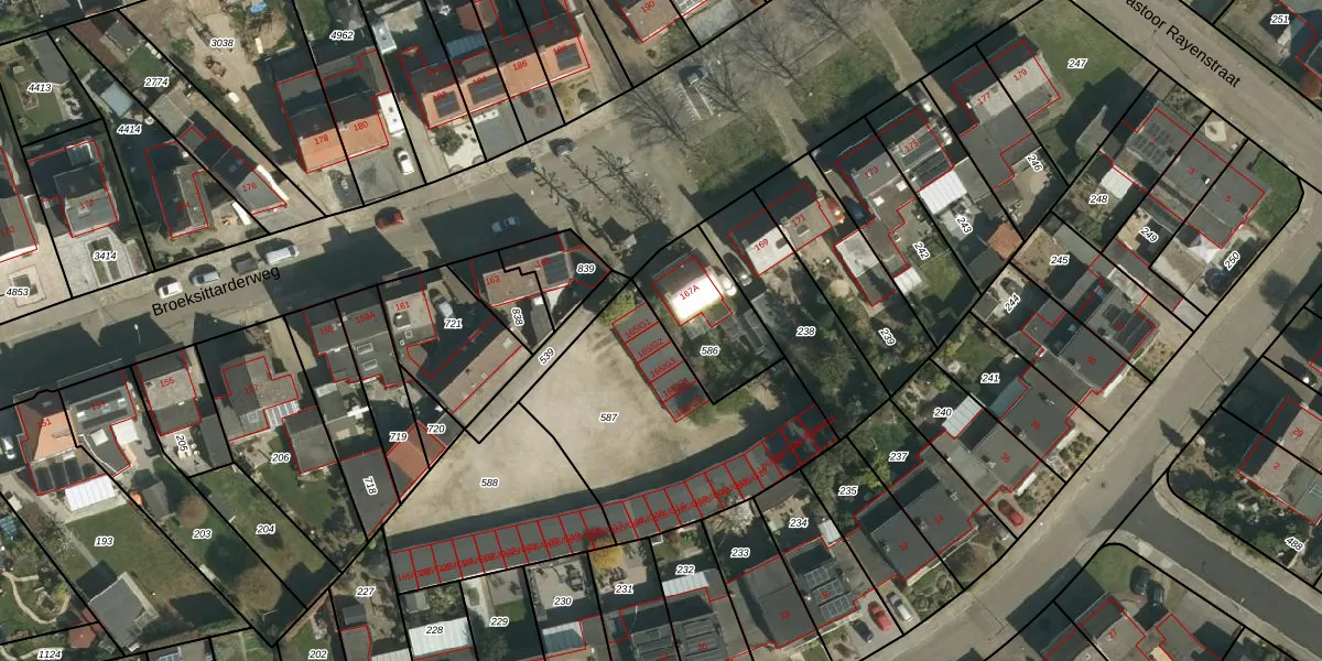 Het perceel waarop Broeksittarderweg 165-G2 staat heeft een oppervlakte van 959 m². Dit is een groot perceel. De perceeloppervlakte wordt geregistreerd door het Kadaster. Gedetailleerde informatie over de maten van dit perceel kunt u vinden in het rapport Kadastrale kaart met maatvoering van Broeksittarderweg 165-G2.