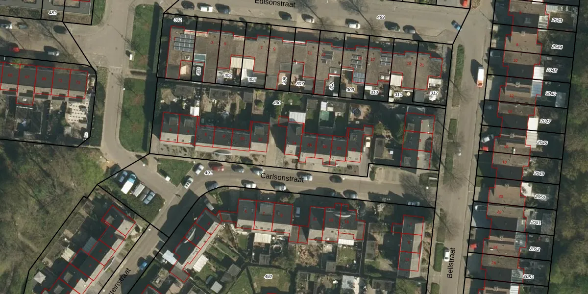Het perceel waarop Carlsonstraat 14 staat heeft een oppervlakte van 2455 m². Dit is een zeer groot perceel. De perceeloppervlakte wordt geregistreerd door het Kadaster. Gedetailleerde informatie over de maten van dit perceel kunt u vinden in het rapport Kadastrale kaart met maatvoering van Carlsonstraat 14.