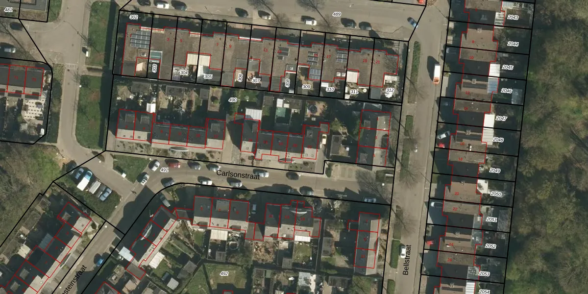 Het perceel waarop Carlsonstraat 20 staat heeft een oppervlakte van 2455 m². Dit is een zeer groot perceel. De perceeloppervlakte wordt geregistreerd door het Kadaster. Gedetailleerde informatie over de maten van dit perceel kunt u vinden in het rapport Kadastrale kaart met maatvoering van Carlsonstraat 20.
