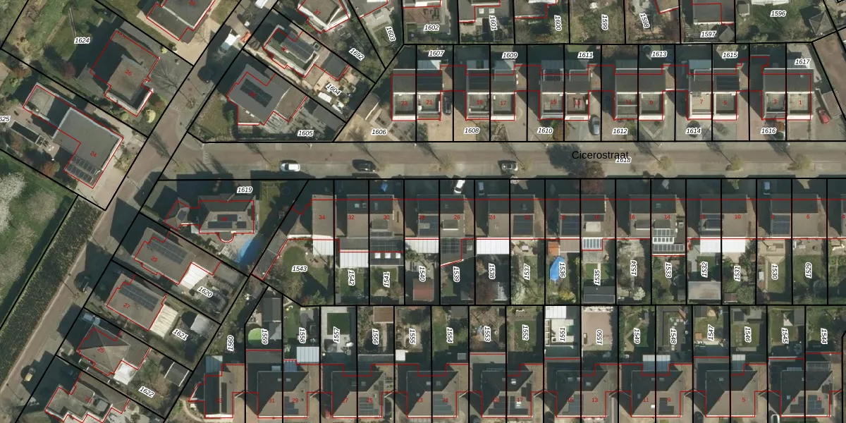 Het perceel waarop Cicerostraat 28 staat heeft een oppervlakte van 250 m². Dit is een middelgroot perceel. De perceeloppervlakte wordt geregistreerd door het Kadaster. Gedetailleerde informatie over de maten van dit perceel kunt u vinden in het rapport Kadastrale kaart met maatvoering van Cicerostraat 28.