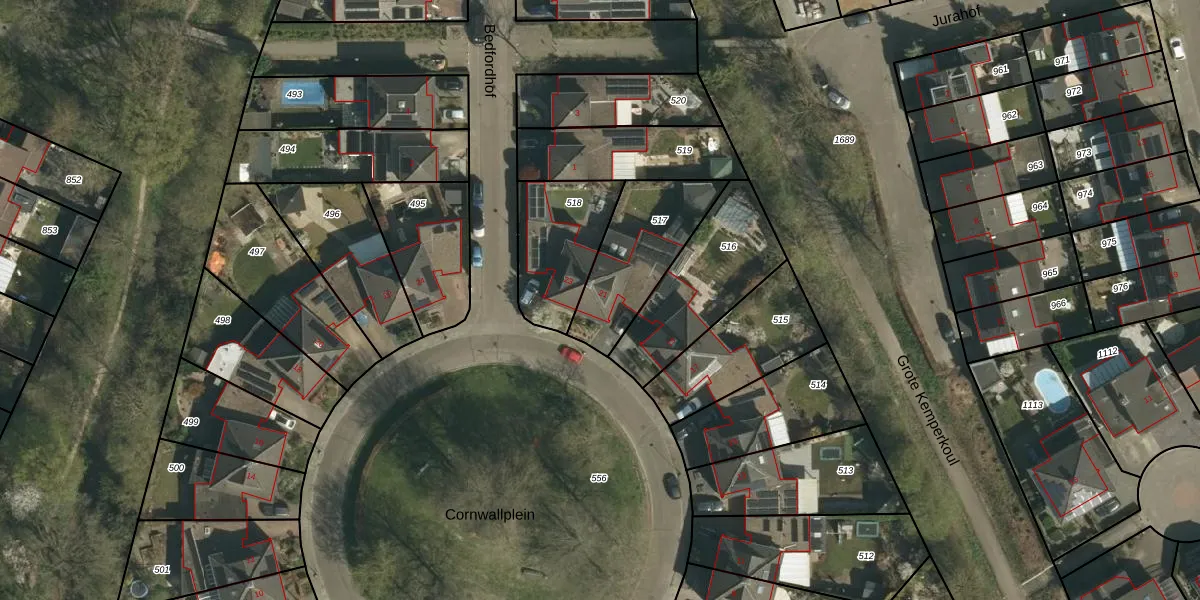 Het perceel waarop Cornwallplein 21 staat heeft een oppervlakte van 363 m². Dit is een groot perceel. De perceeloppervlakte wordt geregistreerd door het Kadaster. Gedetailleerde informatie over de maten van dit perceel kunt u vinden in het rapport Kadastrale kaart met maatvoering van Cornwallplein 21.