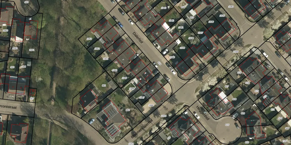 Het perceel waarop Dalerhof 6 staat heeft een oppervlakte van 246 m². Dit is een middelgroot perceel. De perceeloppervlakte wordt geregistreerd door het Kadaster. Gedetailleerde informatie over de maten van dit perceel kunt u vinden in het rapport Kadastrale kaart met maatvoering van Dalerhof 6.