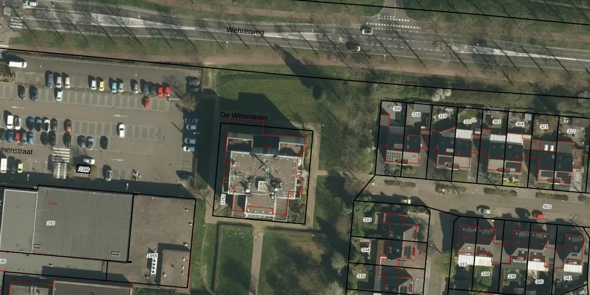 Het perceel waarop De Wimmeren 10 staat heeft een oppervlakte van 995 m². Dit is een groot perceel. De perceeloppervlakte wordt geregistreerd door het Kadaster. Gedetailleerde informatie over de maten van dit perceel kunt u vinden in het rapport Kadastrale kaart met maatvoering van De Wimmeren 10.