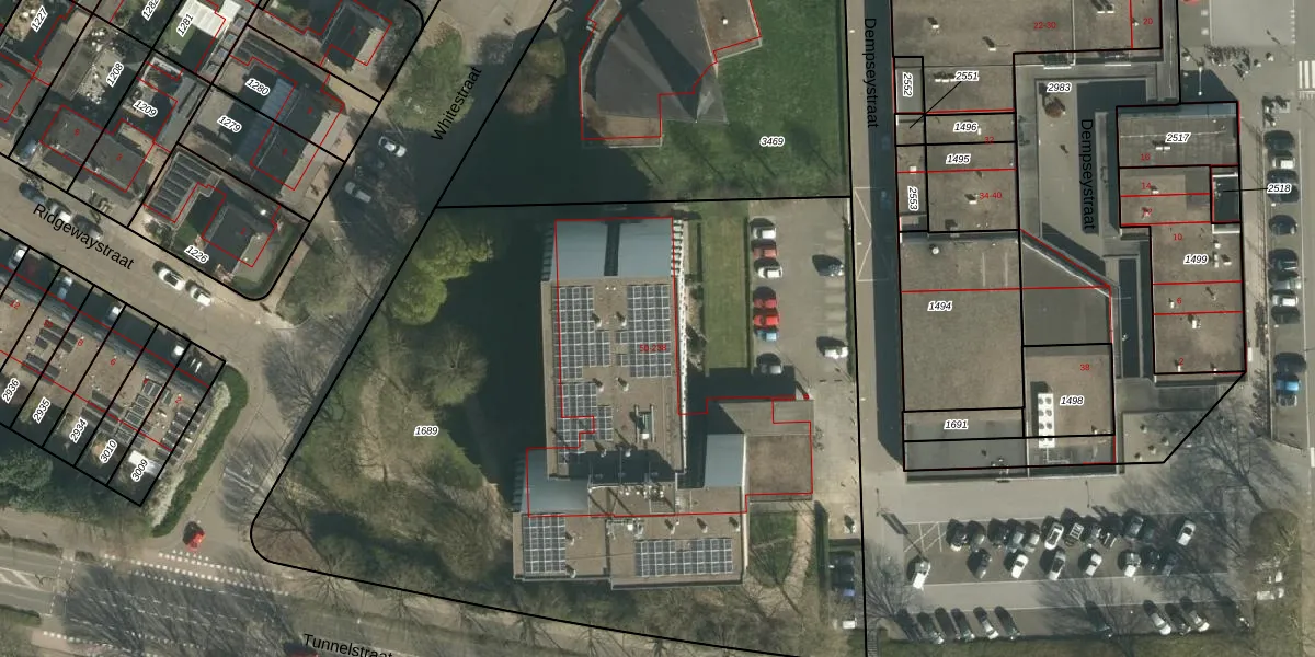 Het perceel waarop Dempseystraat 164 staat heeft een oppervlakte van 5085 m². Dit is een zeer groot perceel. De perceeloppervlakte wordt geregistreerd door het Kadaster. Gedetailleerde informatie over de maten van dit perceel kunt u vinden in het rapport Kadastrale kaart met maatvoering van Dempseystraat 164.