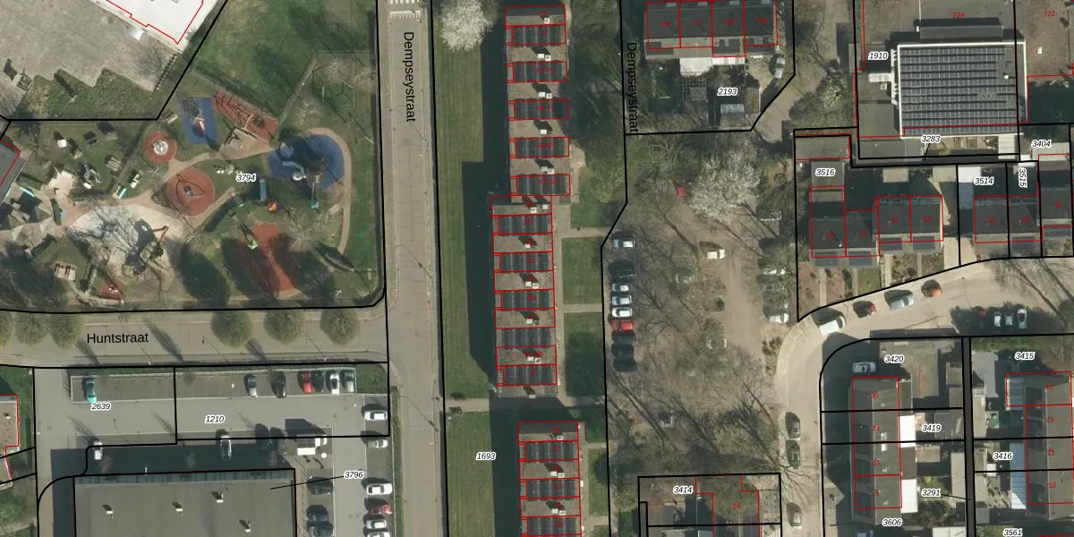 Het perceel waarop Dempseystraat 53 staat heeft een oppervlakte van 4995 m². Dit is een zeer groot perceel. De perceeloppervlakte wordt geregistreerd door het Kadaster. Gedetailleerde informatie over de maten van dit perceel kunt u vinden in het rapport Kadastrale kaart met maatvoering van Dempseystraat 53.