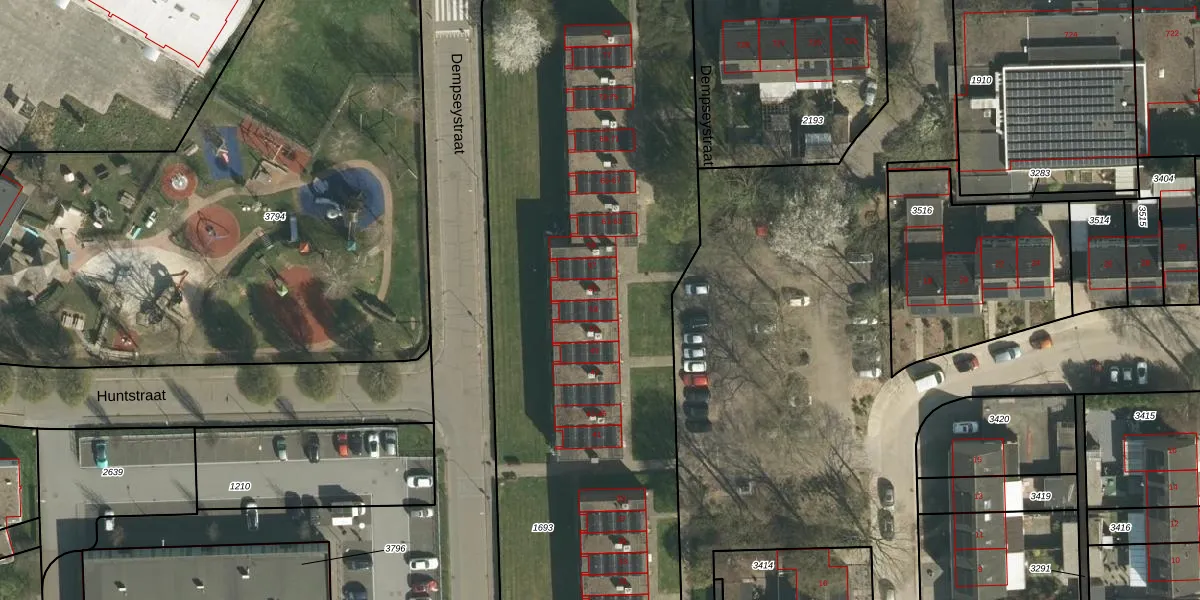 Het perceel waarop Dempseystraat 55 staat heeft een oppervlakte van 4995 m². Dit is een zeer groot perceel. De perceeloppervlakte wordt geregistreerd door het Kadaster. Gedetailleerde informatie over de maten van dit perceel kunt u vinden in het rapport Kadastrale kaart met maatvoering van Dempseystraat 55.