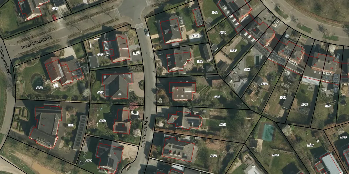 Dirk Pollartdreef 14 is gelegen op kadastraal perceel STD00S1800. Deze kadastrale aanduiding is uniek en wordt gebruikt door het Kadaster om eigendomsrechten en andere zakelijke rechten vast te leggen. Het perceel maakt onderdeel uit van de kadastrale gemeente Sittard.