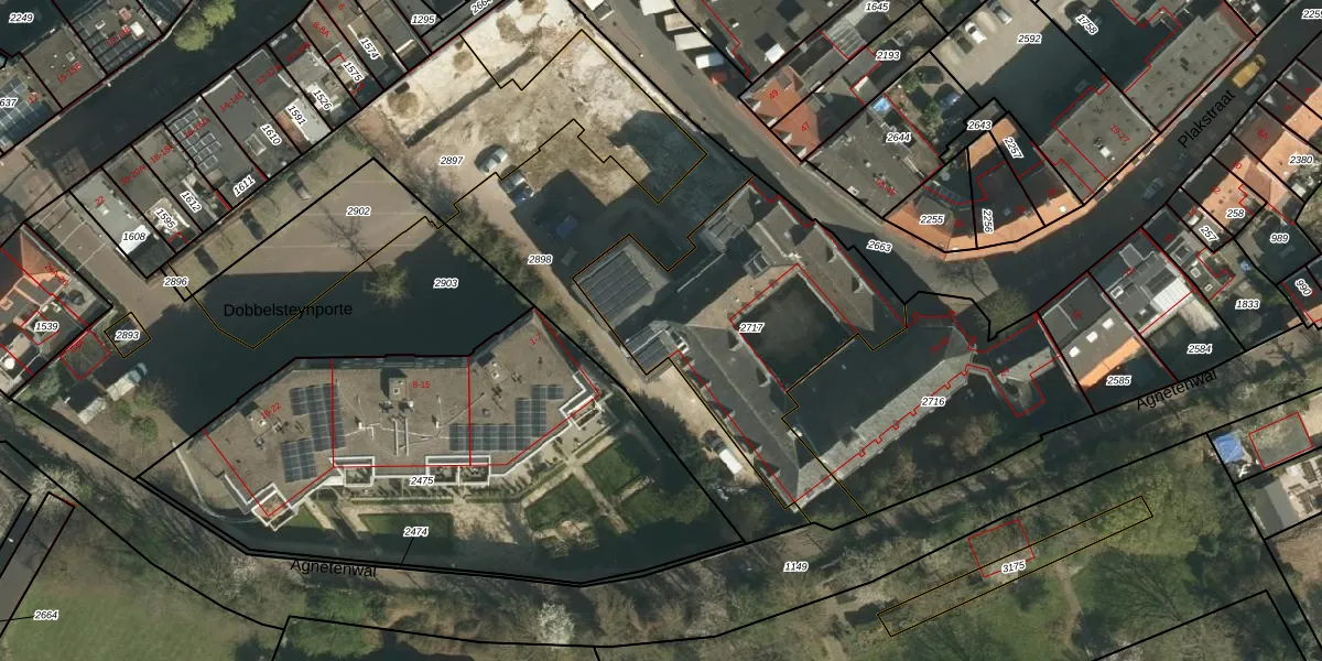 Het perceel waarop Dobbelsteynporte 64 staat heeft een oppervlakte van 1159 m². Dit is een zeer groot perceel. De perceeloppervlakte wordt geregistreerd door het Kadaster. Gedetailleerde informatie over de maten van dit perceel kunt u vinden in het rapport Kadastrale kaart met maatvoering van Dobbelsteynporte 64.