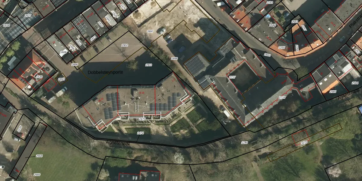 Het perceel waarop Dobbelsteynporte 7 staat heeft een oppervlakte van 2268 m². Dit is een zeer groot perceel. De perceeloppervlakte wordt geregistreerd door het Kadaster. Gedetailleerde informatie over de maten van dit perceel kunt u vinden in het rapport Kadastrale kaart met maatvoering van Dobbelsteynporte 7.