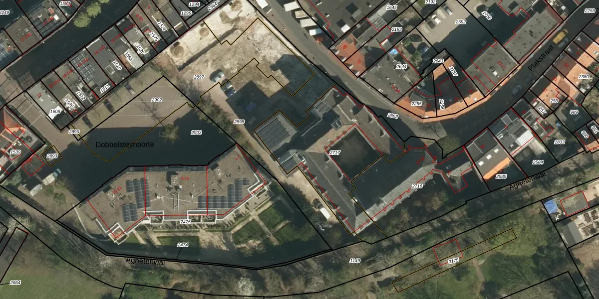 Het perceel waarop Dobbelsteynporte 74 staat heeft een oppervlakte van 1159 m². Dit is een zeer groot perceel. De perceeloppervlakte wordt geregistreerd door het Kadaster. Gedetailleerde informatie over de maten van dit perceel kunt u vinden in het rapport Kadastrale kaart met maatvoering van Dobbelsteynporte 74.