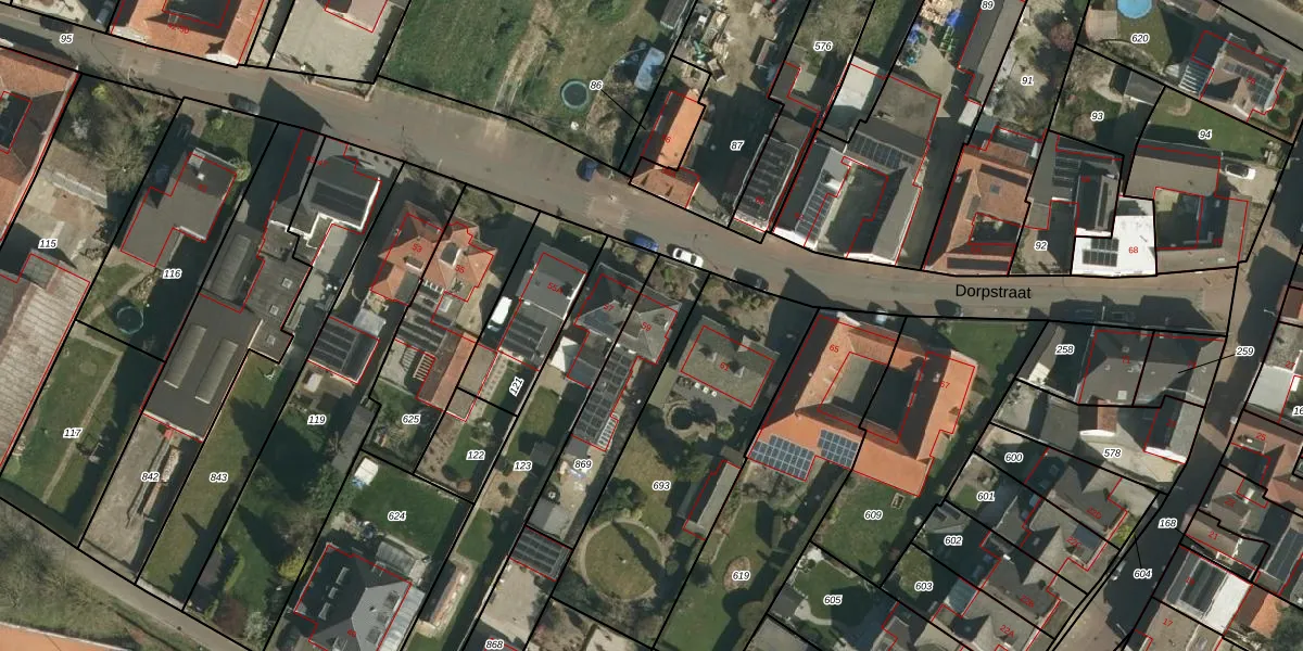 Dorpstraat 59 is gelegen op kadastraal perceel STD00N869. Deze kadastrale aanduiding is uniek en wordt gebruikt door het Kadaster om eigendomsrechten en andere zakelijke rechten vast te leggen. Het perceel maakt onderdeel uit van de kadastrale gemeente Sittard.