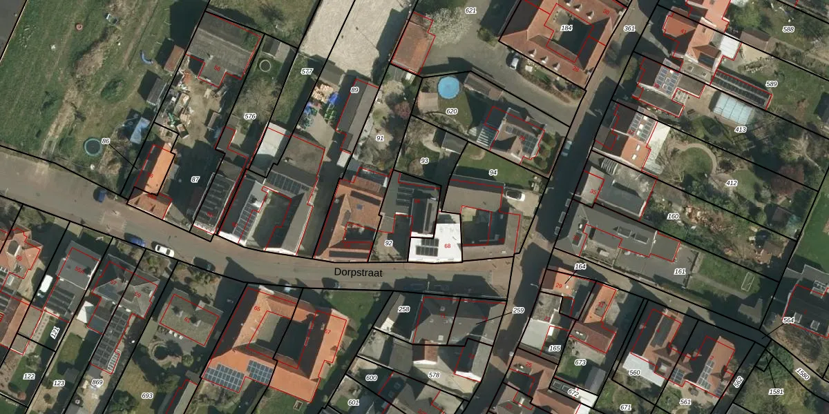 Het perceel waarop Dorpstraat 66 staat heeft een oppervlakte van 255 m². Dit is een middelgroot perceel. De perceeloppervlakte wordt geregistreerd door het Kadaster. Gedetailleerde informatie over de maten van dit perceel kunt u vinden in het rapport Kadastrale kaart met maatvoering van Dorpstraat 66.