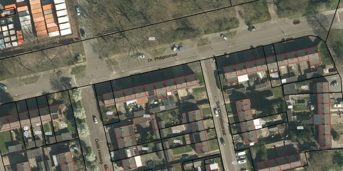 Het perceel waarop Dr. Philipsstraat 37 staat heeft een oppervlakte van 2075 m². Dit is een zeer groot perceel. De perceeloppervlakte wordt geregistreerd door het Kadaster. Gedetailleerde informatie over de maten van dit perceel kunt u vinden in het rapport Kadastrale kaart met maatvoering van Dr. Philipsstraat 37.
