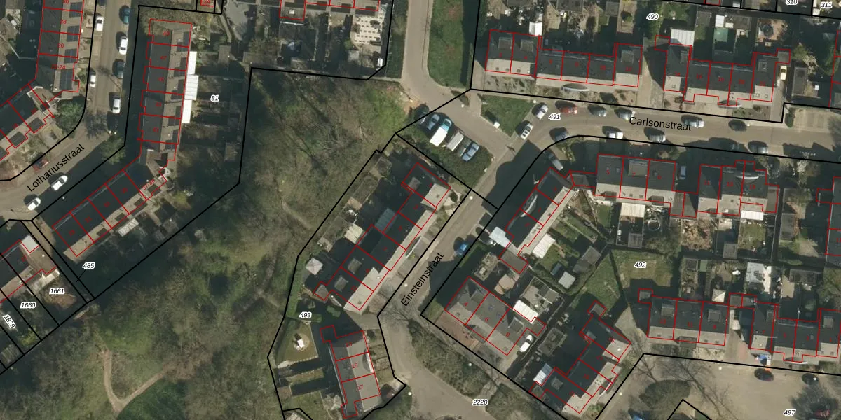 Einsteinstraat 3 is gelegen op kadastraal perceel STD00S493. Deze kadastrale aanduiding is uniek en wordt gebruikt door het Kadaster om eigendomsrechten en andere zakelijke rechten vast te leggen. Het perceel maakt onderdeel uit van de kadastrale gemeente Sittard.