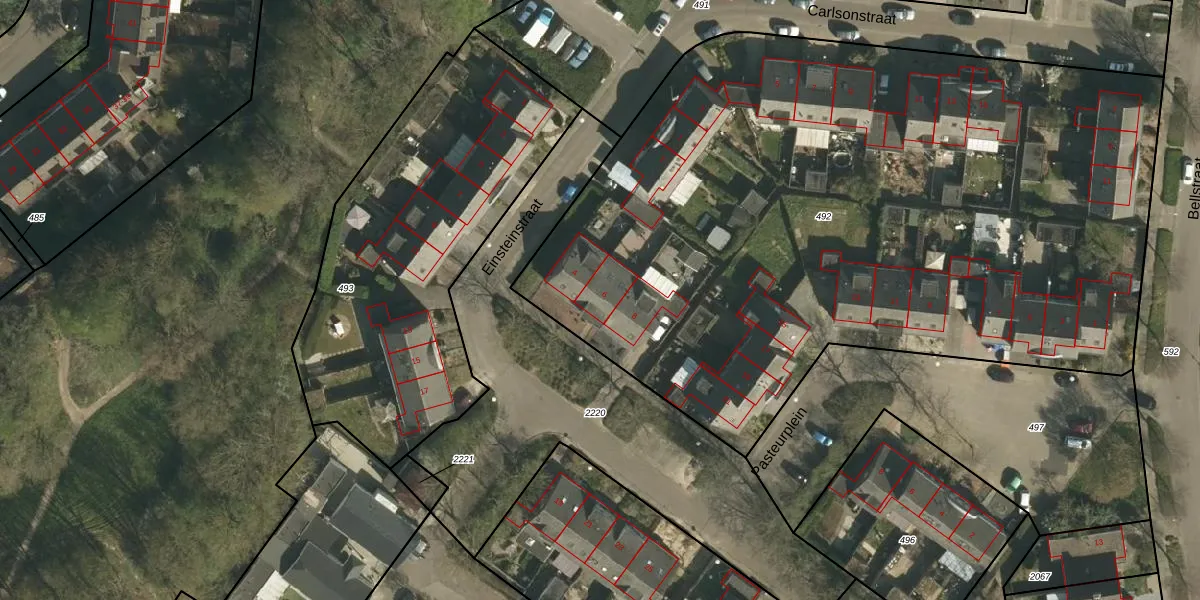 Einsteinstraat 6 is gelegen op kadastraal perceel STD00S492. Deze kadastrale aanduiding is uniek en wordt gebruikt door het Kadaster om eigendomsrechten en andere zakelijke rechten vast te leggen. Het perceel maakt onderdeel uit van de kadastrale gemeente Sittard.