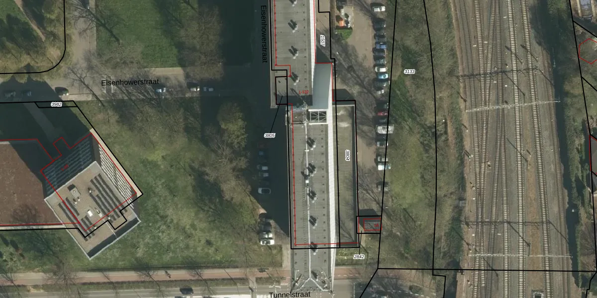 Het perceel waarop Eisenhowerstraat 125 staat heeft een oppervlakte van 1875 m². Dit is een zeer groot perceel. De perceeloppervlakte wordt geregistreerd door het Kadaster. Gedetailleerde informatie over de maten van dit perceel kunt u vinden in het rapport Kadastrale kaart met maatvoering van Eisenhowerstraat 125.