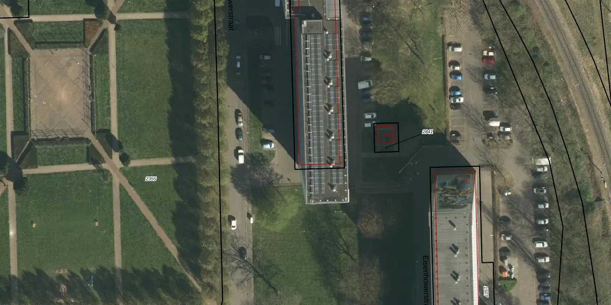 Het perceel waarop Eisenhowerstraat 166 staat heeft een oppervlakte van 1880 m². Dit is een zeer groot perceel. De perceeloppervlakte wordt geregistreerd door het Kadaster. Gedetailleerde informatie over de maten van dit perceel kunt u vinden in het rapport Kadastrale kaart met maatvoering van Eisenhowerstraat 166.