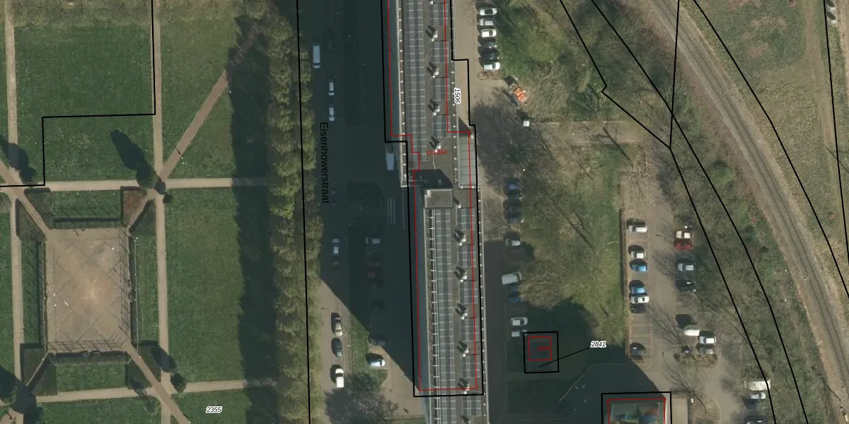 Het perceel waarop Eisenhowerstraat 170 staat heeft een oppervlakte van 1880 m². Dit is een zeer groot perceel. De perceeloppervlakte wordt geregistreerd door het Kadaster. Gedetailleerde informatie over de maten van dit perceel kunt u vinden in het rapport Kadastrale kaart met maatvoering van Eisenhowerstraat 170.