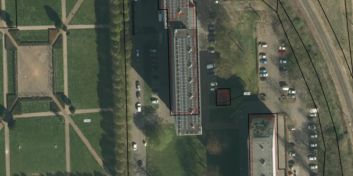 Het perceel waarop Eisenhowerstraat 233 staat heeft een oppervlakte van 1880 m². Dit is een zeer groot perceel. De perceeloppervlakte wordt geregistreerd door het Kadaster. Gedetailleerde informatie over de maten van dit perceel kunt u vinden in het rapport Kadastrale kaart met maatvoering van Eisenhowerstraat 233.
