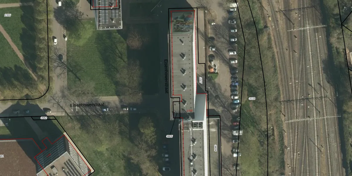 Het perceel waarop Eisenhowerstraat 29 staat heeft een oppervlakte van 1875 m². Dit is een zeer groot perceel. De perceeloppervlakte wordt geregistreerd door het Kadaster. Gedetailleerde informatie over de maten van dit perceel kunt u vinden in het rapport Kadastrale kaart met maatvoering van Eisenhowerstraat 29.