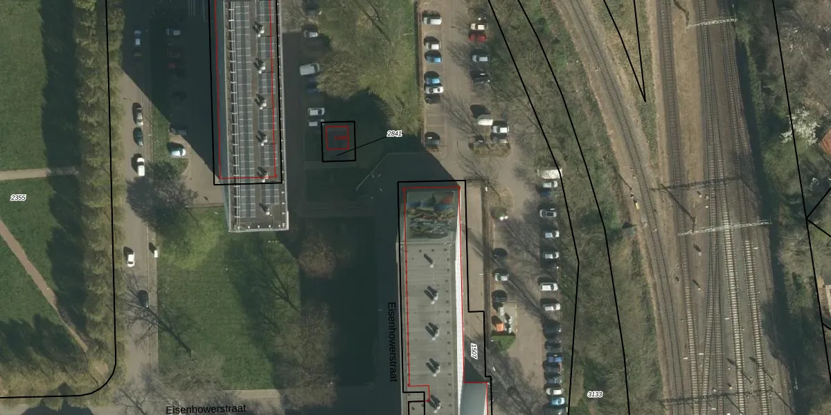 Het perceel waarop Eisenhowerstraat 44 staat heeft een oppervlakte van 1875 m². Dit is een zeer groot perceel. De perceeloppervlakte wordt geregistreerd door het Kadaster. Gedetailleerde informatie over de maten van dit perceel kunt u vinden in het rapport Kadastrale kaart met maatvoering van Eisenhowerstraat 44.