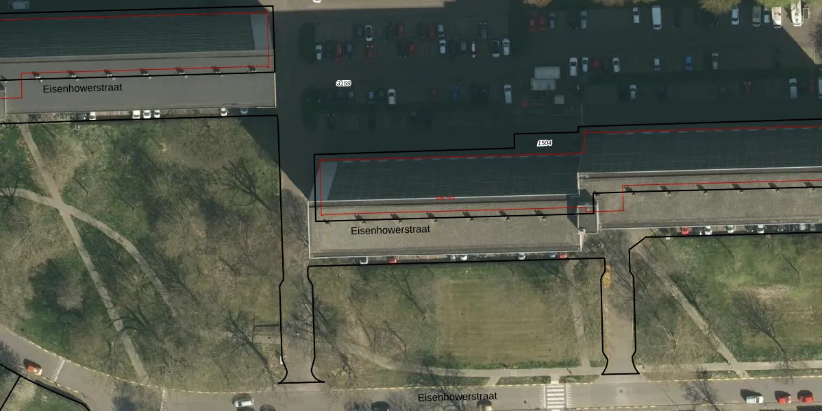 Het perceel waarop Eisenhowerstraat 480 staat heeft een oppervlakte van 2295 m². Dit is een zeer groot perceel. De perceeloppervlakte wordt geregistreerd door het Kadaster. Gedetailleerde informatie over de maten van dit perceel kunt u vinden in het rapport Kadastrale kaart met maatvoering van Eisenhowerstraat 480.