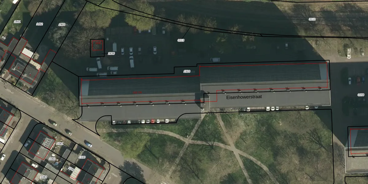 Het perceel waarop Eisenhowerstraat 553-G368 staat heeft een oppervlakte van 2274 m². Dit is een zeer groot perceel. De perceeloppervlakte wordt geregistreerd door het Kadaster. Gedetailleerde informatie over de maten van dit perceel kunt u vinden in het rapport Kadastrale kaart met maatvoering van Eisenhowerstraat 553-G368.