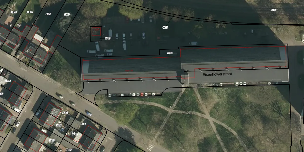 Het perceel waarop Eisenhowerstraat 553-G359 staat heeft een oppervlakte van 2274 m². Dit is een zeer groot perceel. De perceeloppervlakte wordt geregistreerd door het Kadaster. Gedetailleerde informatie over de maten van dit perceel kunt u vinden in het rapport Kadastrale kaart met maatvoering van Eisenhowerstraat 553-G359.